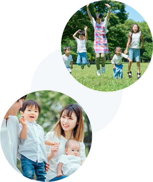 私たちは、0歳から就学以降まで切れ目なく子どもたちの育ちを応援し、保護者の皆さまの心の負担を少しでも軽くすることを目指しています。
