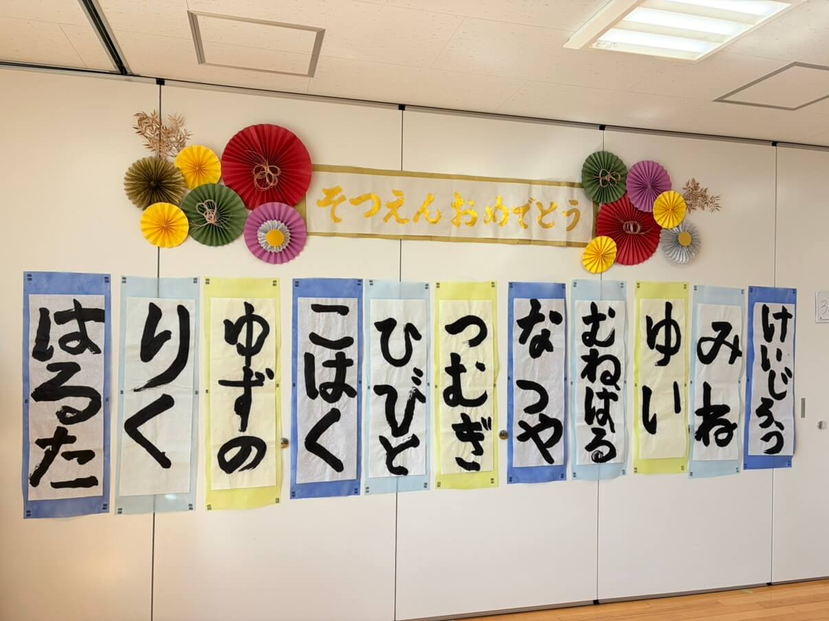 11名の年長さんが卒園式を迎えました。練習した習字で最後に書き初めに挑戦しました。