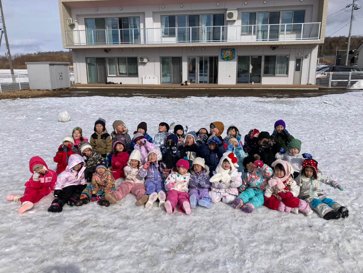 雪上運動会たのしかったね! 2026 2/25 さくら保育園 2026年2月25日 今年は、雪が少ない釧路ですが、雪が降ったら雪遊びを楽しみにしている子ども達!今日は雪上運動会を楽しんで、ハイポーズ! さくら保育園